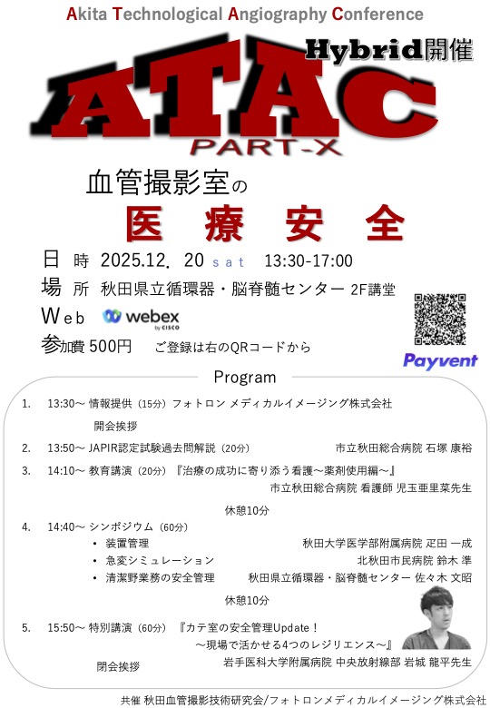 | 共催 | 秋田血管撮影技術研究会 フォトロンメディカルイメージング株式会社 |