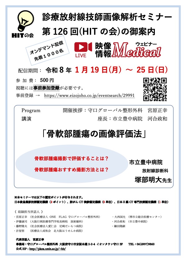 | 主催 | 診療放射線技師画像解析セミナー(HITの会) |