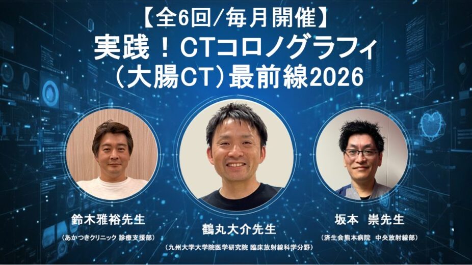 大腸CTに特化した勉強会をオンラインにて開催いたします。 テーマを「内視鏡 with 大腸CT」とし 内視鏡挿入困難症例を中心に、大腸CTでこそできることなどを 内視鏡画像を交えながら症例紹介していきます。