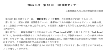 第10回DR計測セミナーは、「撮影技術」と「計測学」の2部構成で企画いたしました。