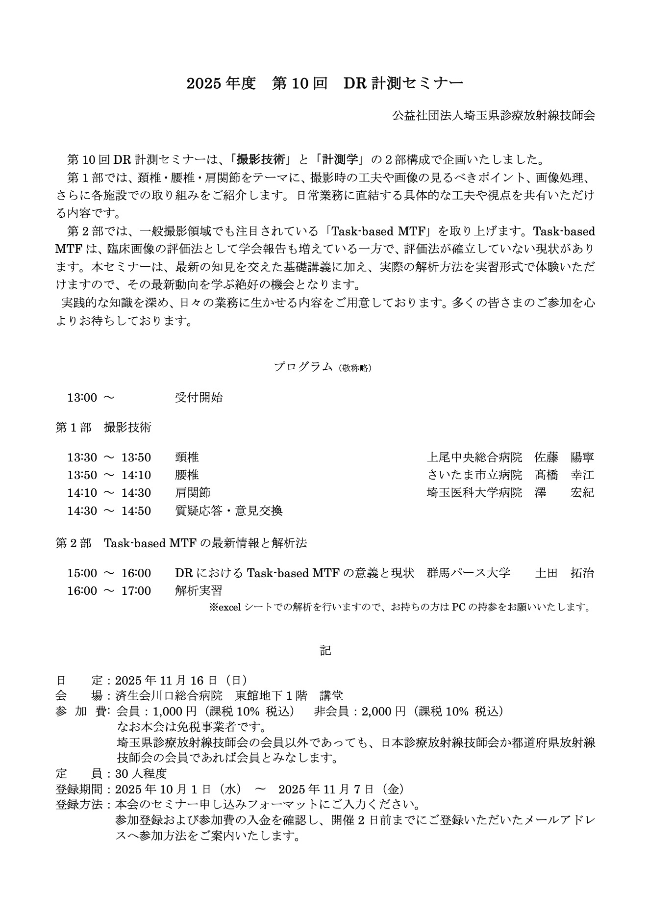 主催 | 公益社団法人埼玉県診療放射線技師会 |