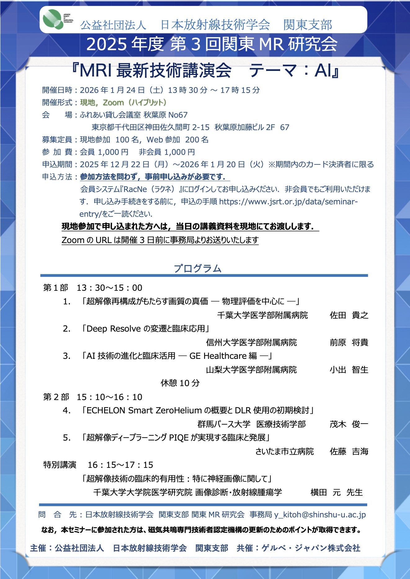 | 主催 | 公益社団法人 日本放射線技術学会 関東支部 |