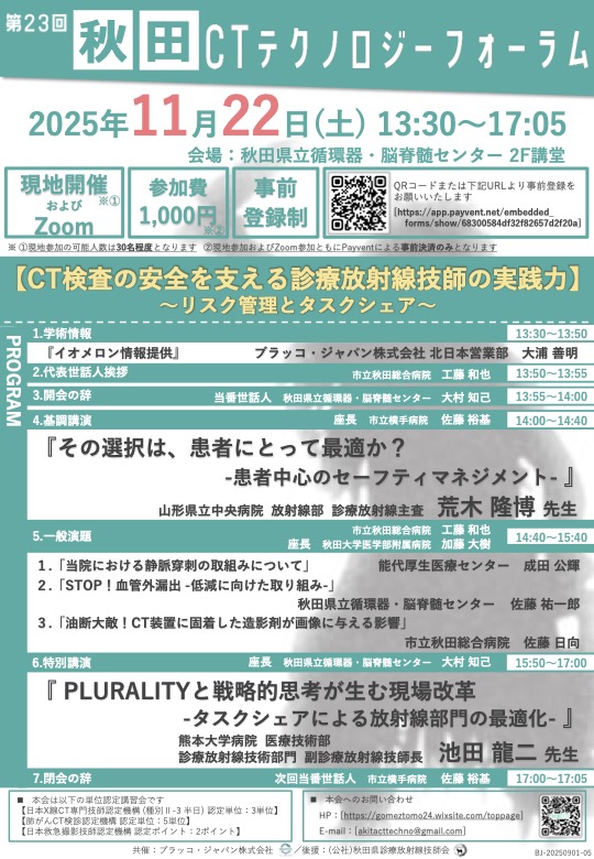 | 共催 | 秋田CTテクノロジーフォーラム ブラッコ・ジャパン株式会社 |