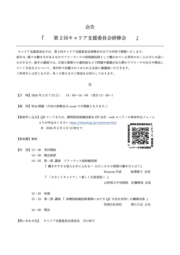 | 主催 | 静岡県放射線技師会 キャリア支援委員会 |