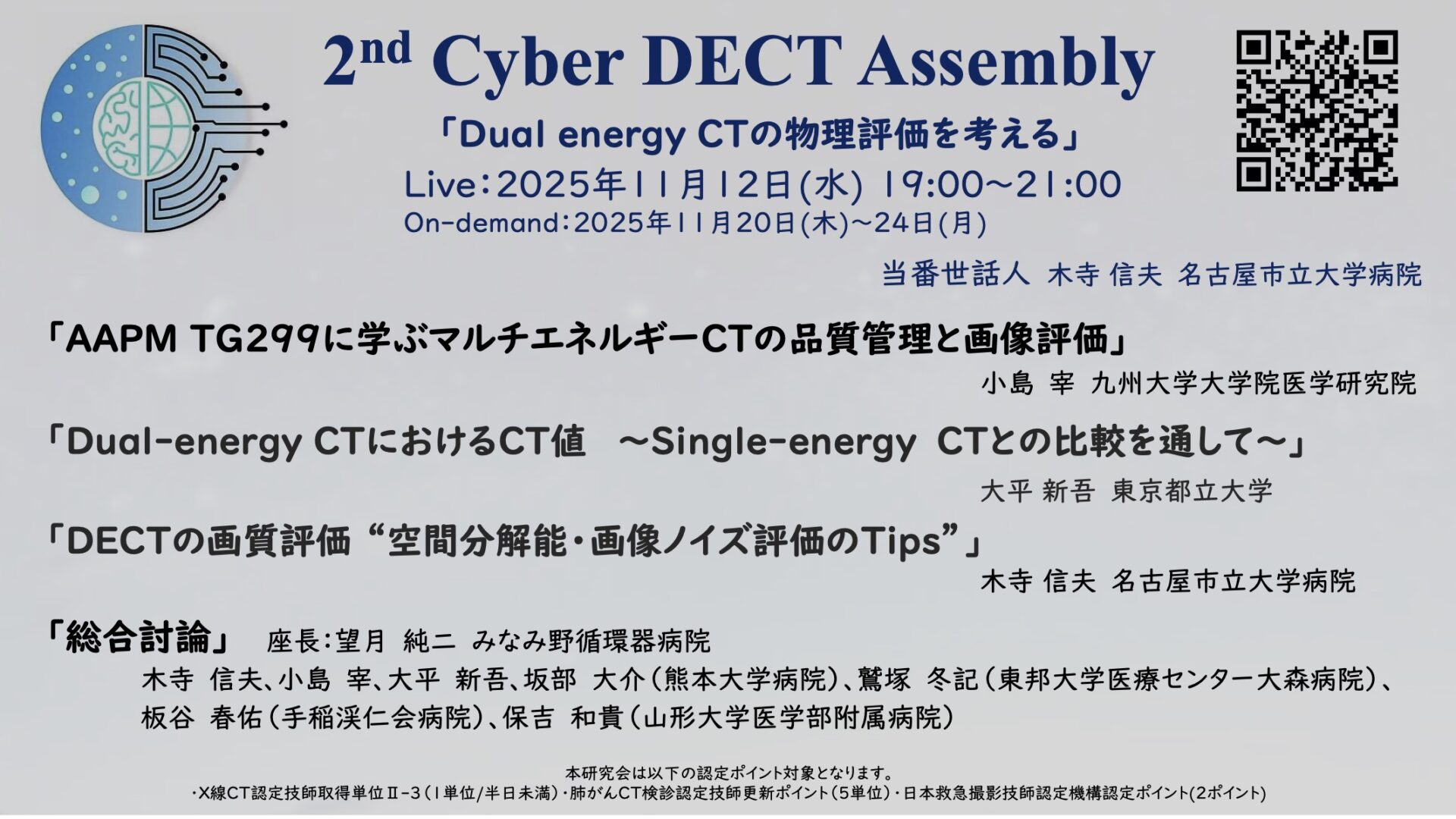 | 単位付与 | X線CT認定技師取得単位II-3:1単位/半日未満 肺がんCT検診認定技師更新ポイント:5単位 日本救急撮影技師認定機構認定ポイント:2ポイント |