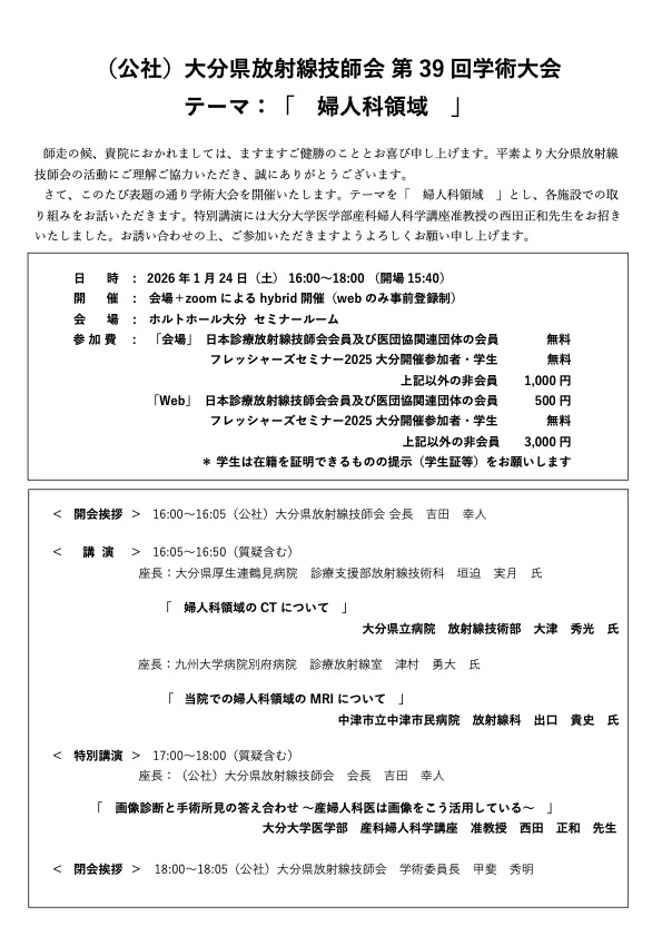 | 主催 | 公益社団法人 大分県放射線技師会 |