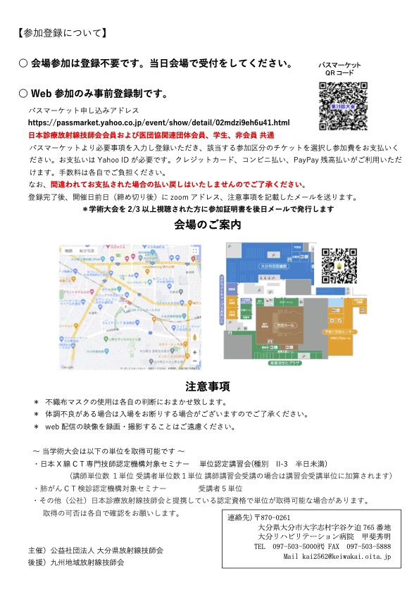 | 単位付与 | 日本X線CT専門技師認定機構(種別 II-3 半日未満):1単位 肺がんCT検診認定機構:5単位 |