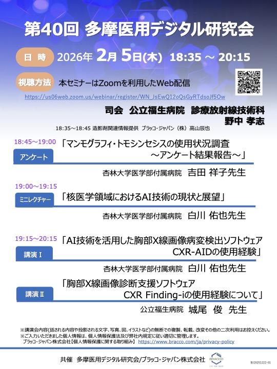 | 共催 | 多摩医用デジタル研究会 ブラッコ・ジャパン株式会社 |