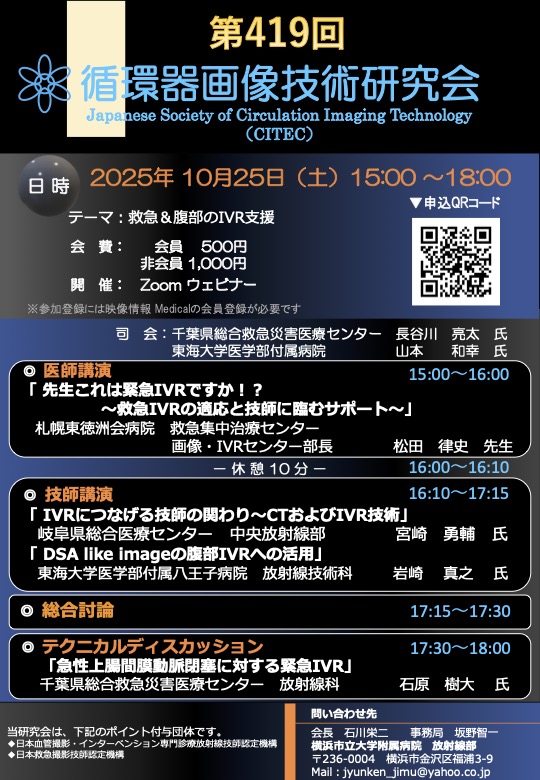 | 単位付与 | 日本血管撮影・インターベンション専門診療放射線技師認定機構 日本救急撮影技師認定機構 |