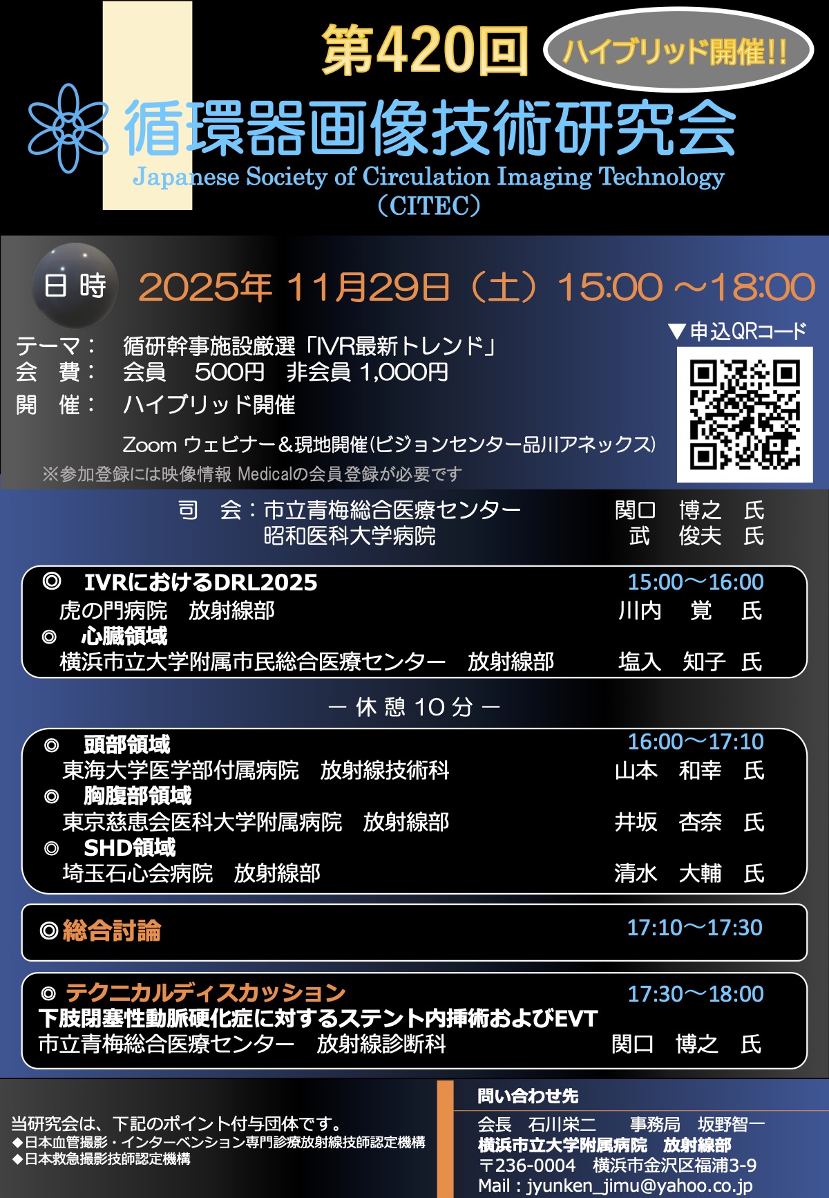 | 単位付与 | 日本血管撮影・インターベンション専門診療放射線技師認定機構 日本救急撮影技師認定機構 |