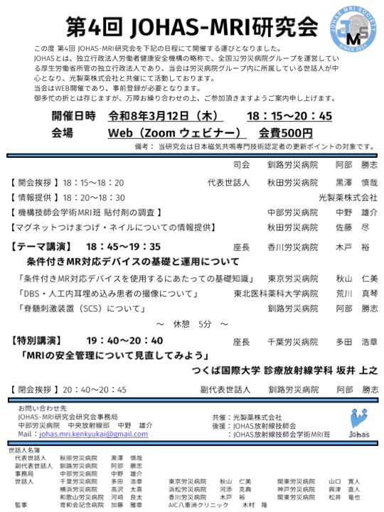 | 主催 | JOHAS-MRI研究会 |