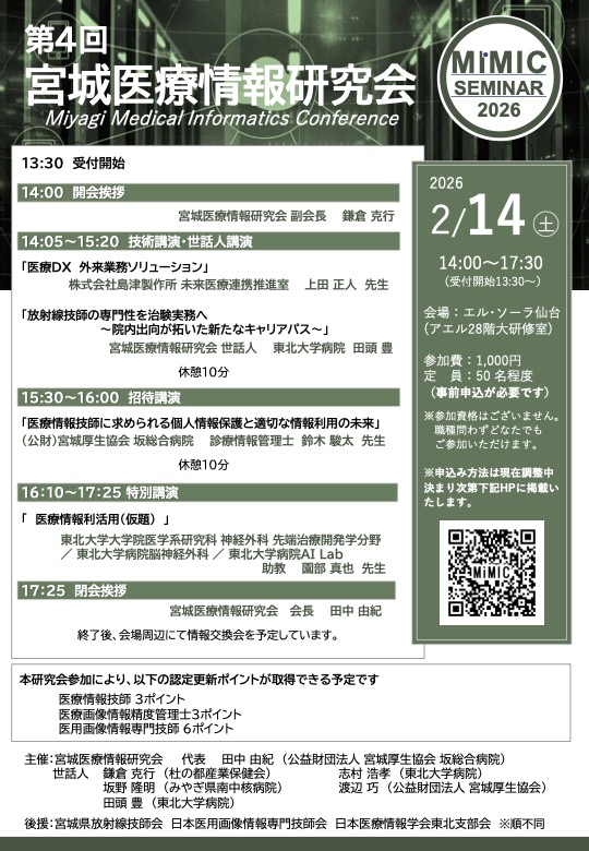| 後援 | 宮城県放射線技師会 日本医用画像情報専門技師会 日本医療情報学会東北支部会 |