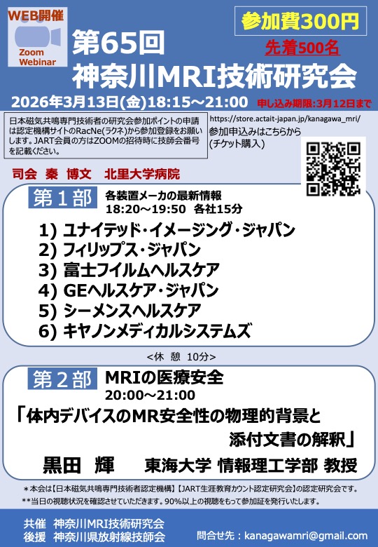 | 単位付与 | 日本磁気共鳴専門技術者認定機構 JART生涯教育カウント認定研究会 |
