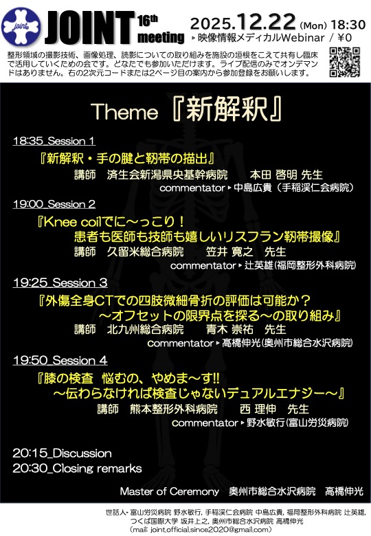 | 主催 | JOINT; Japan Orthopedic Imaging Network Team |
