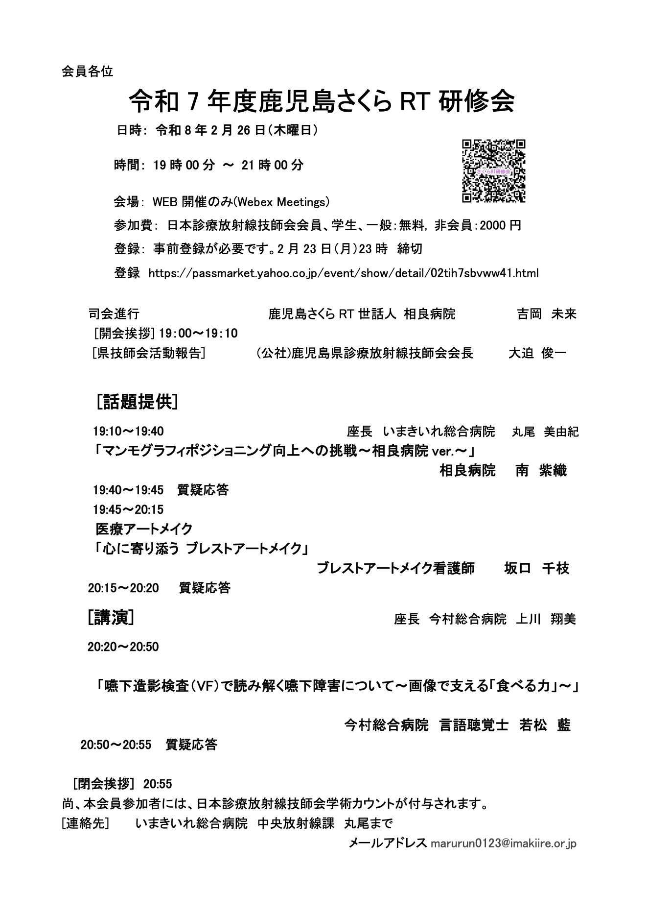 | 費用 | 日本診療放射線技師会 会員:無料 非会員:2,000円 学生:無料 |