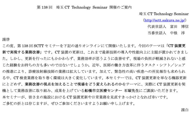 | 単位付与 | X線CT専門技師認定機構:1単位 |