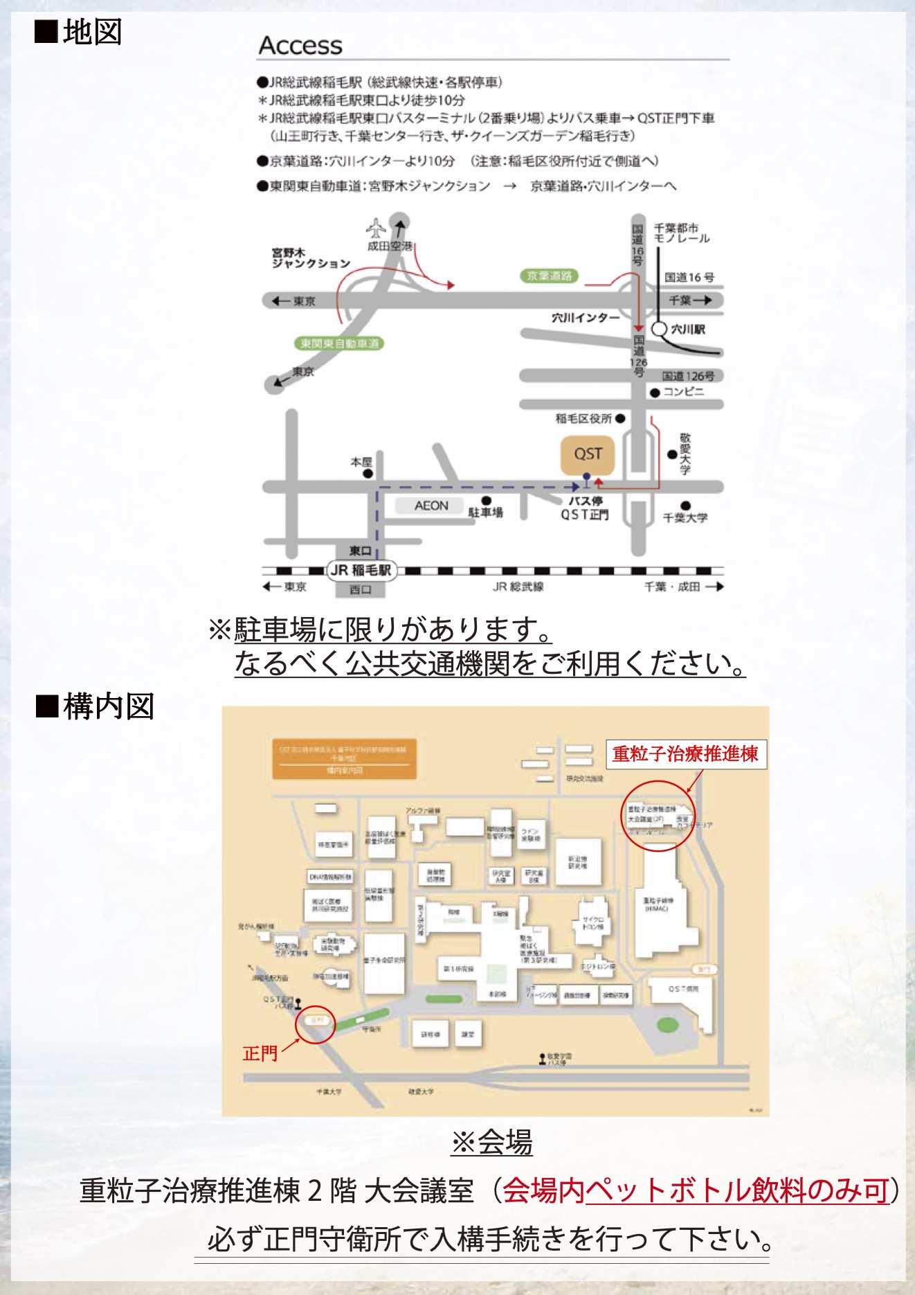 | 会場 | 量子科学技術研究開発機構(QST) 重粒子治療推進棟2階大会議室 |