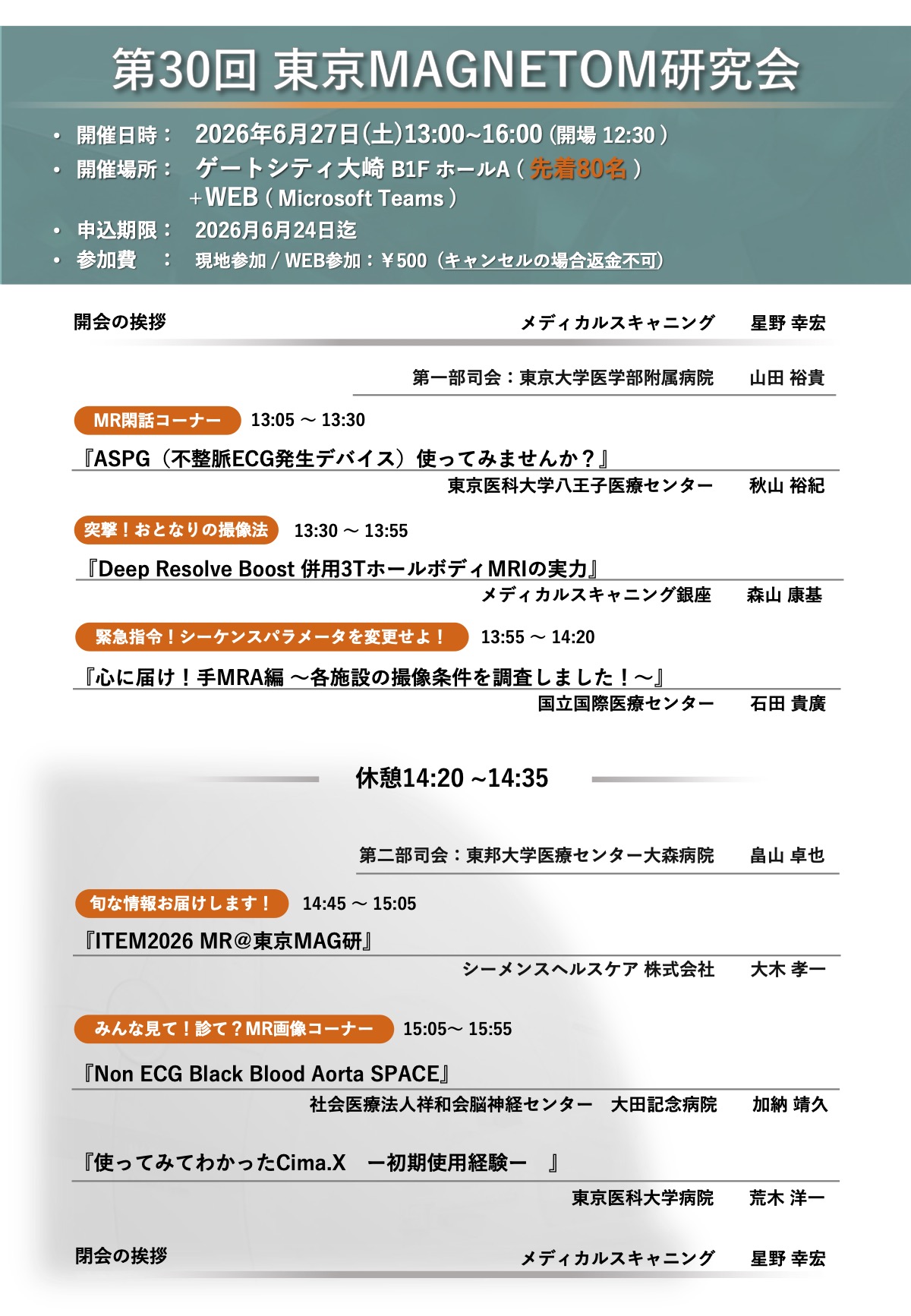 | 共催 | 東京MAGNETOM研究会 シーメンスヘルスケア株式会社 |
