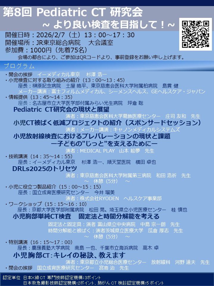 | 単位付与 | 日本X線CT専門技師認定機構:3ポイント 肺がんCT検診認定機構:5ポイント 日本救急撮影技師認定機構:2ポイント |