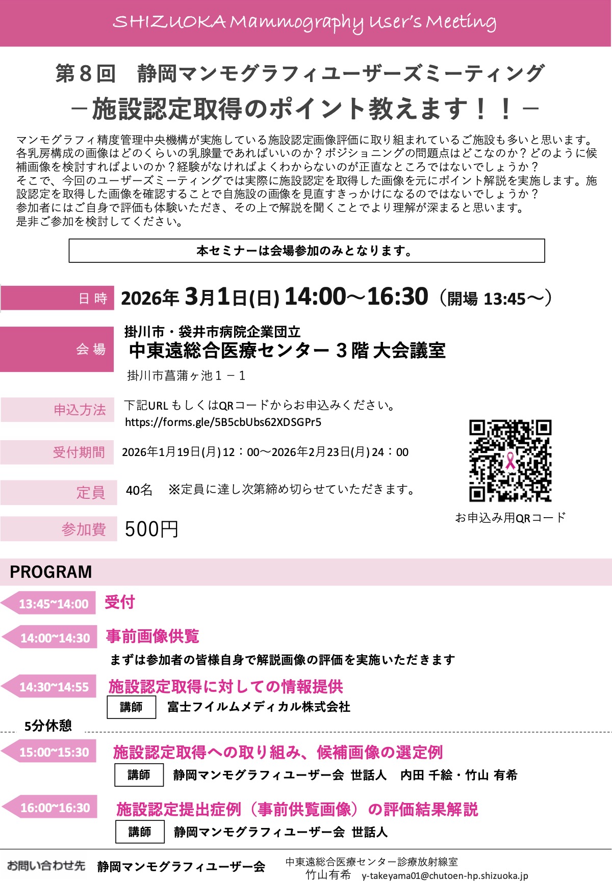 | 主催 | 静岡マンモグラフィユーザー会 |