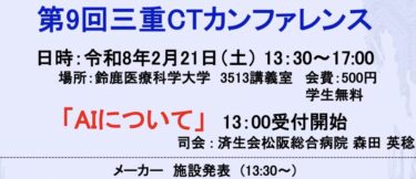 | 共催 | 三重 CTカンファレンス 三重県診療放射線技師会 |