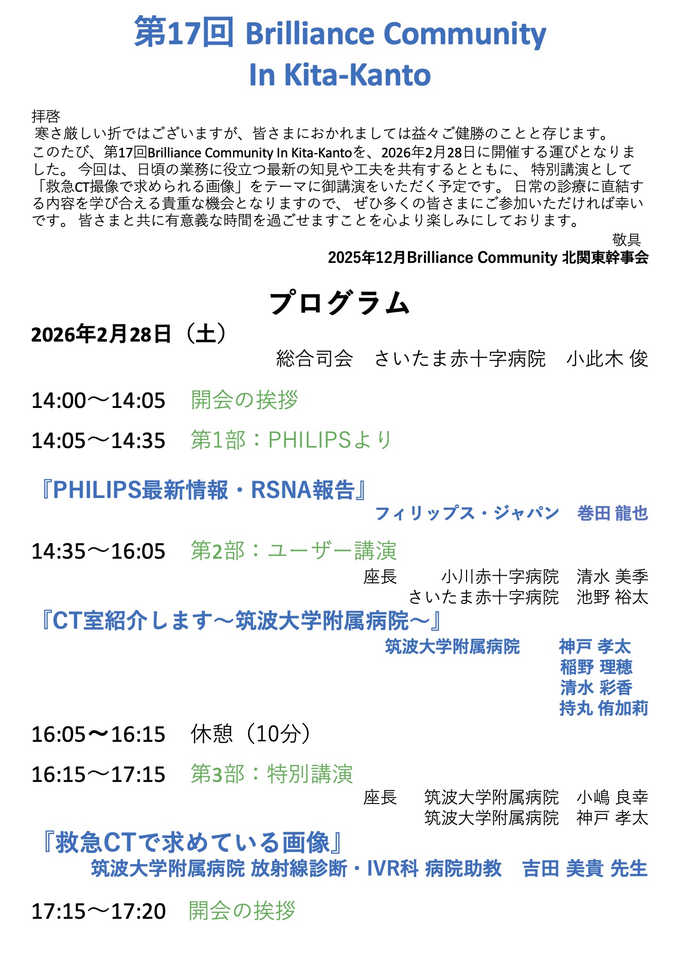 | 共催 | Brilliance Community 北関東 幹事会 株式会社フィリップス・ジャパン |