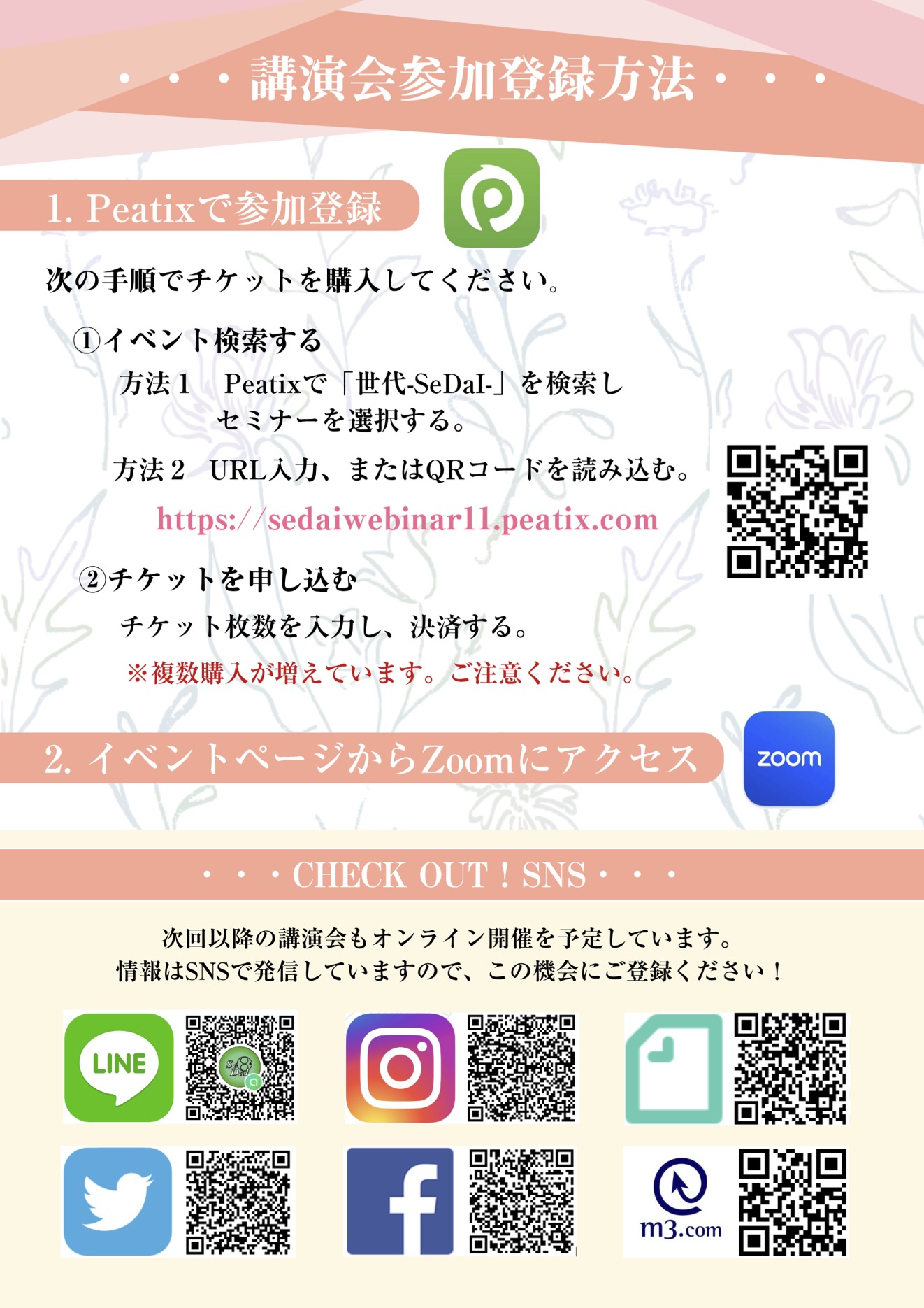 参加費無料とさせていただきますので皆様どうぞご参加下さいませ。参加登録をしていただくことで、”後日配信”もご覧いただけます。ご講演終了後には “配布資料” のご案内もさせていただきます。ご参加お待ちしております。